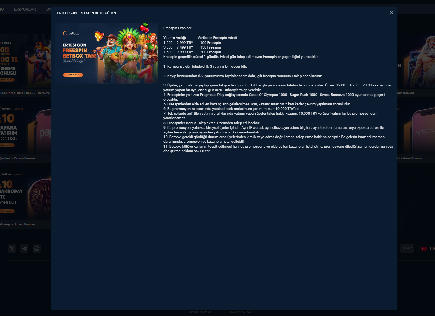 Ertesi Gün Freespin Betbox Bonusu Canlı casino ve bahis oyunlarının en çok kazandıranı Betbox,…